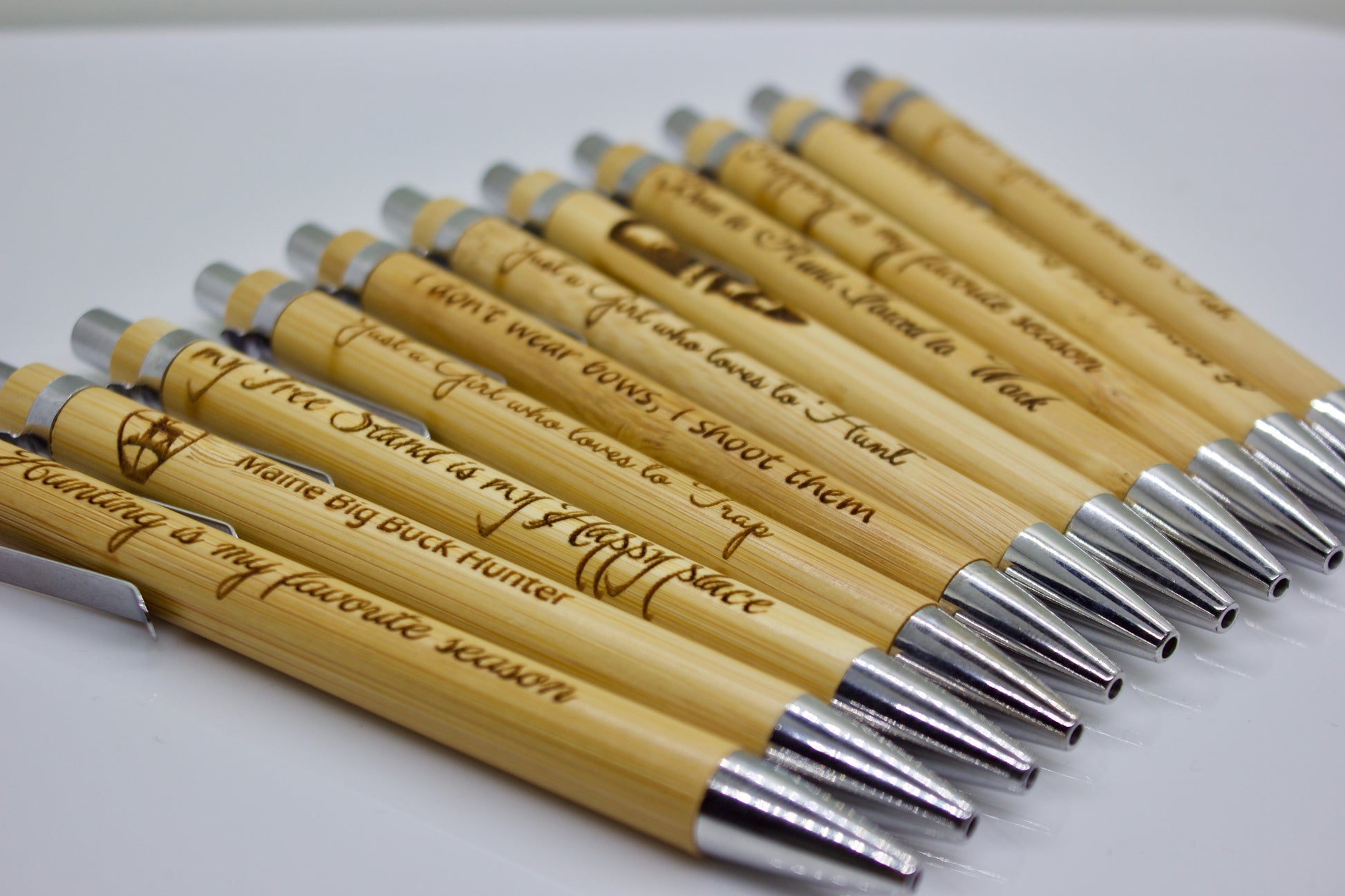 Customizable wooden pens! Choose one of our preset designs, or add your own! Lightweight yet comfortable in your hand, these would make the perfect addition to your stationary collection!